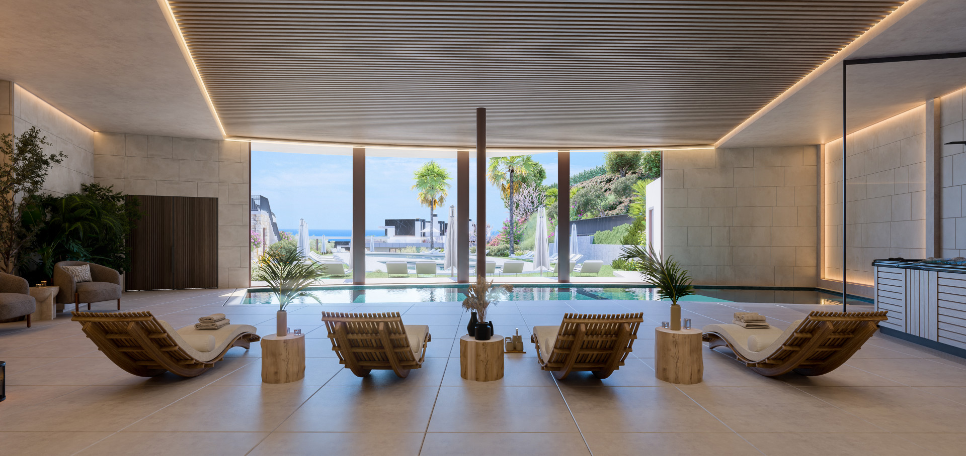 Located at the top of Elviria Hill, one of the most sought-after areas of Marbella East, ZEW is distinguished by its serene and natural setting, surrounded by lush pine forests and open views of the mountains. This enclave is designed for those who desire a quiet life, with a Zen feeling, in harmony with the environment and away from the hustle and bustle, without sacrificing modern comforts.